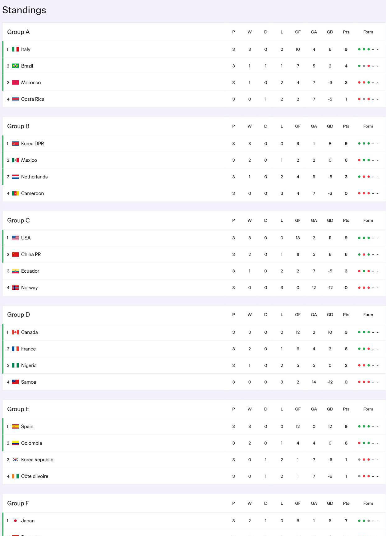 日本队虽未在末轮取胜,但凭借2胜1平的佳绩排名小组第一,顺利晋级16强;中国队获得小组第二,朝鲜队则取得三连胜,而韩国队1平2负遗憾出局,未能成为“四个最好的小组第三”,给亚洲球队留下遗憾。